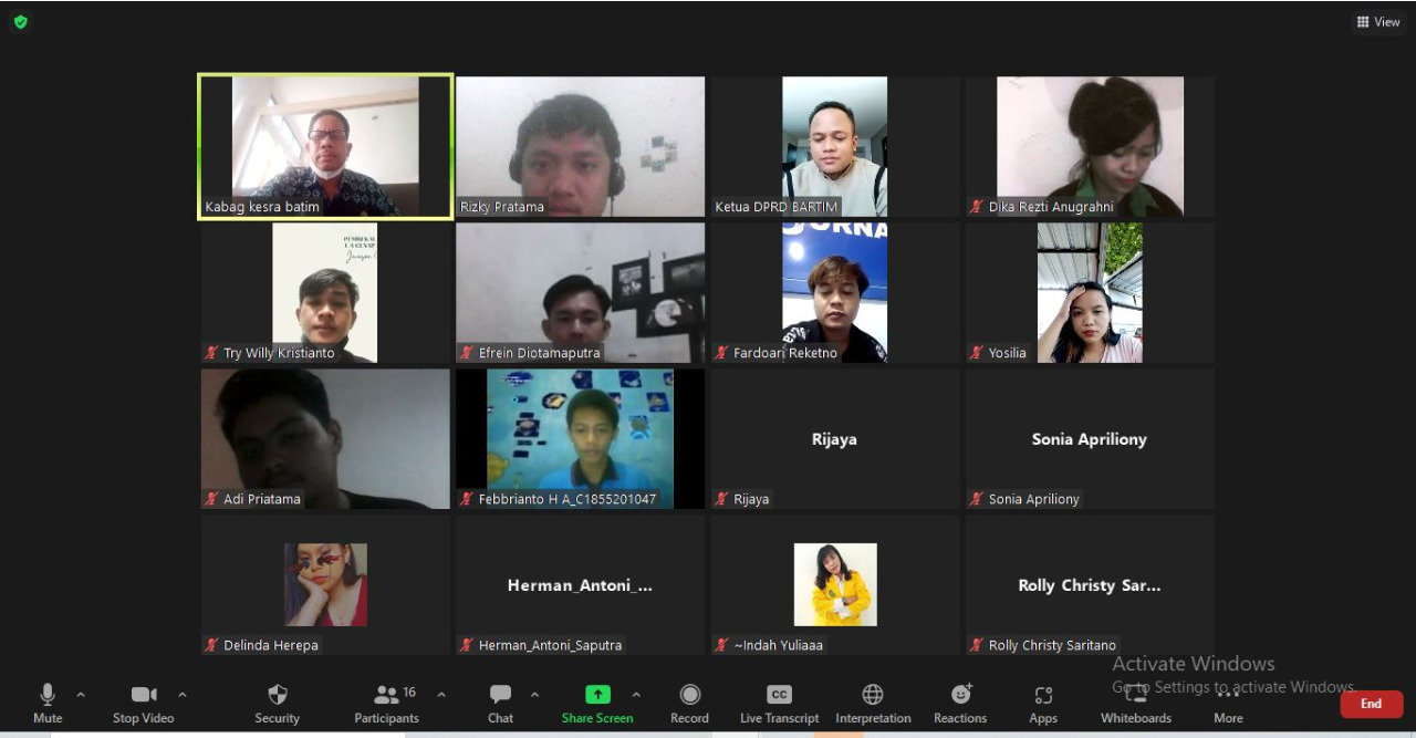 KaltengBicara.com-Palangka Raya. Himpunan Mahasiswa Barito Timur (HIMA BARTIM) yang berada di Kota Palangka Raya baru saja melakukan audiensi ke Pemerintah Daerah (Pemda) yang mana acara tersebut dihadiri Kepala Bagian Kesejahteraan Rakyat dan Ketua DPRD DPRD Barito Timur Nursulistio, S.Pd,I yang dilaksanakan daring melalui via zoom meeting pada pukul 15.00 WIB s/d selesai, pada Jum’at (08/7).