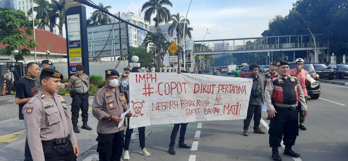 KaltengBicara.com – Jakarta. Gerakan solidaritas aktivis yang tergabung dalam Ikatan Masyarakat Peduli Hukum (IMPH) menggelar aksi menuntut pencopotan Direktur Utama Pertamina, aksi tersebut digelar didepan gedung Pertamina Pusat, Jakarta. Rabu, (08/03/2023)