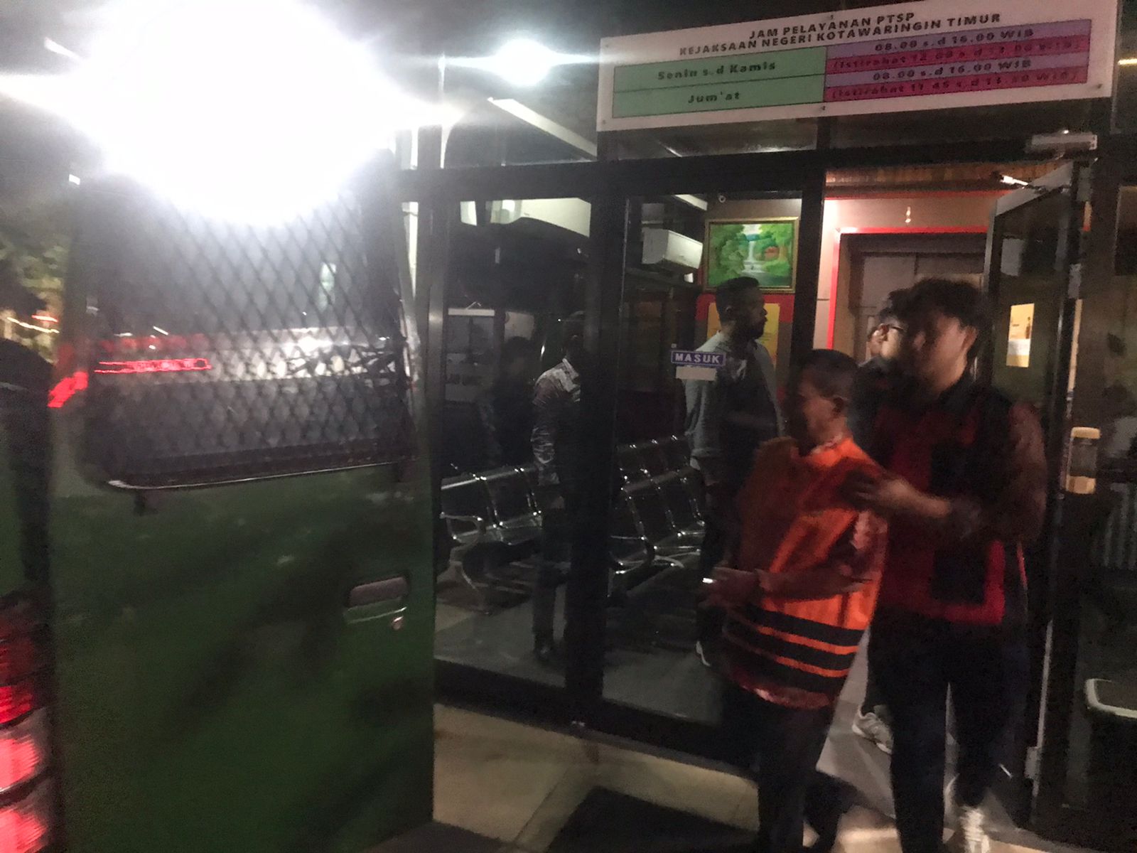 Berdasarkan pantauan, F digiring oleh pihak Kejaksaan Kotim dengan menggunakan baju orange (baju tahanan) dan dimasukan ke dalam mobil tahanan kejaksaan untuk dibawa ke Lapas Kelas II B Sampit.