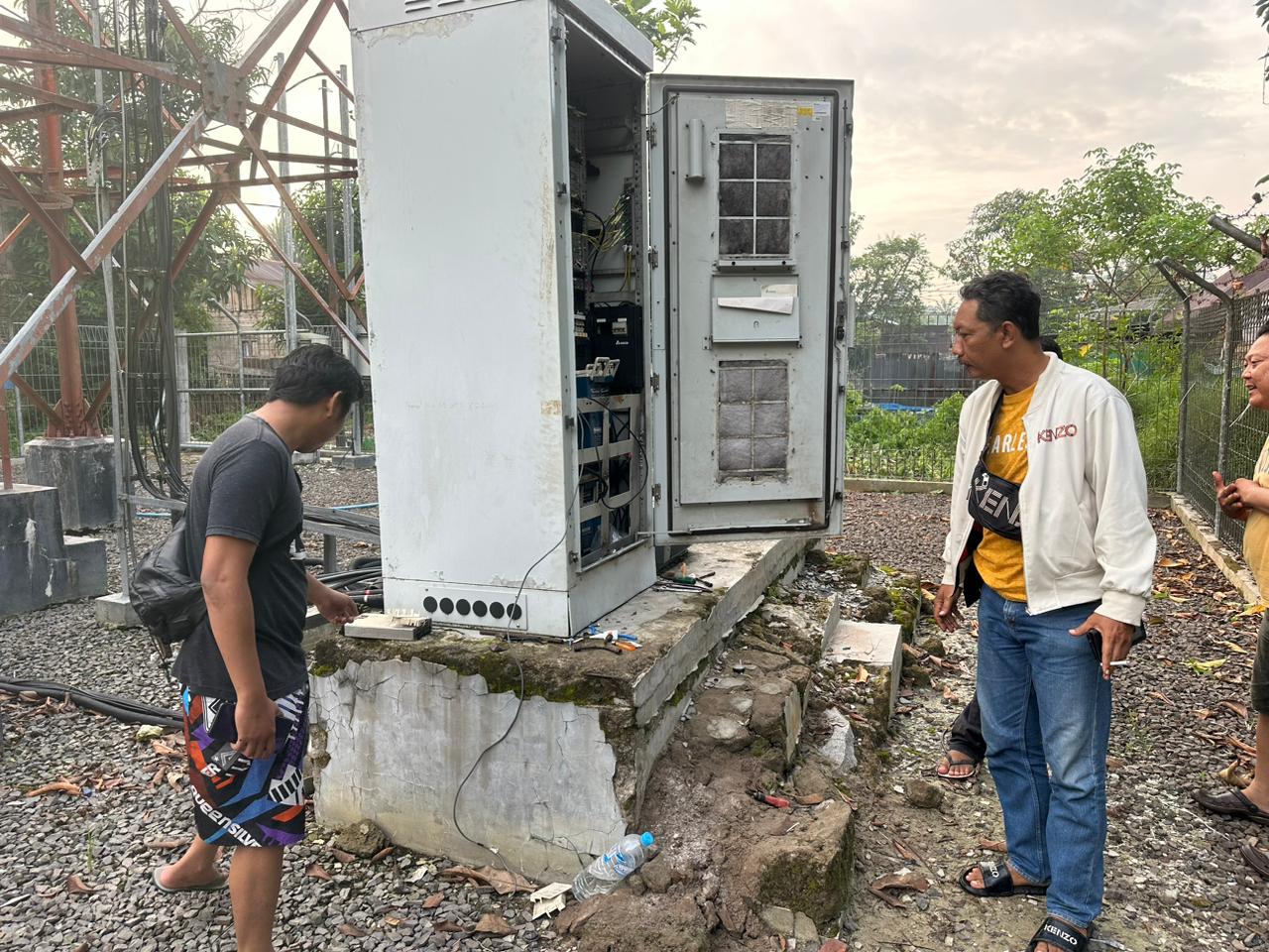 Kedua pelaku memasuki kawasan pemancar dengan merusak pagar besi menggunakan gunting besi besar. Selanjutnya, mereka merusak pintu kabinet rekri atau perumahan penyalur listrik di lokasi dengan maksud mengambil baterai.