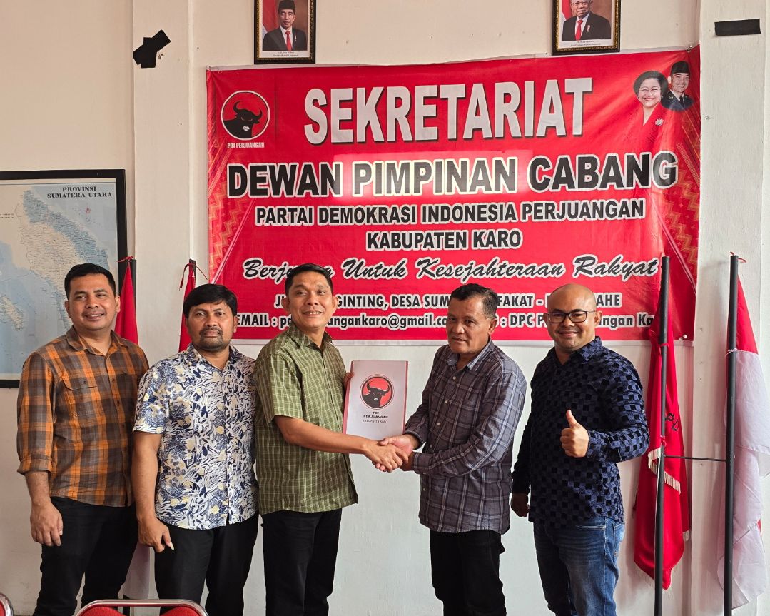 Di Kantor DPC PDI Perjuangan Karo, Abetnego Tarigan bersama tim diterima oleh Sekretaris DPC dan dalan kunjungan sekaligus pengembalian formulir pada DPC NasDem Karo, Abet diterima fungsionaris DPC.