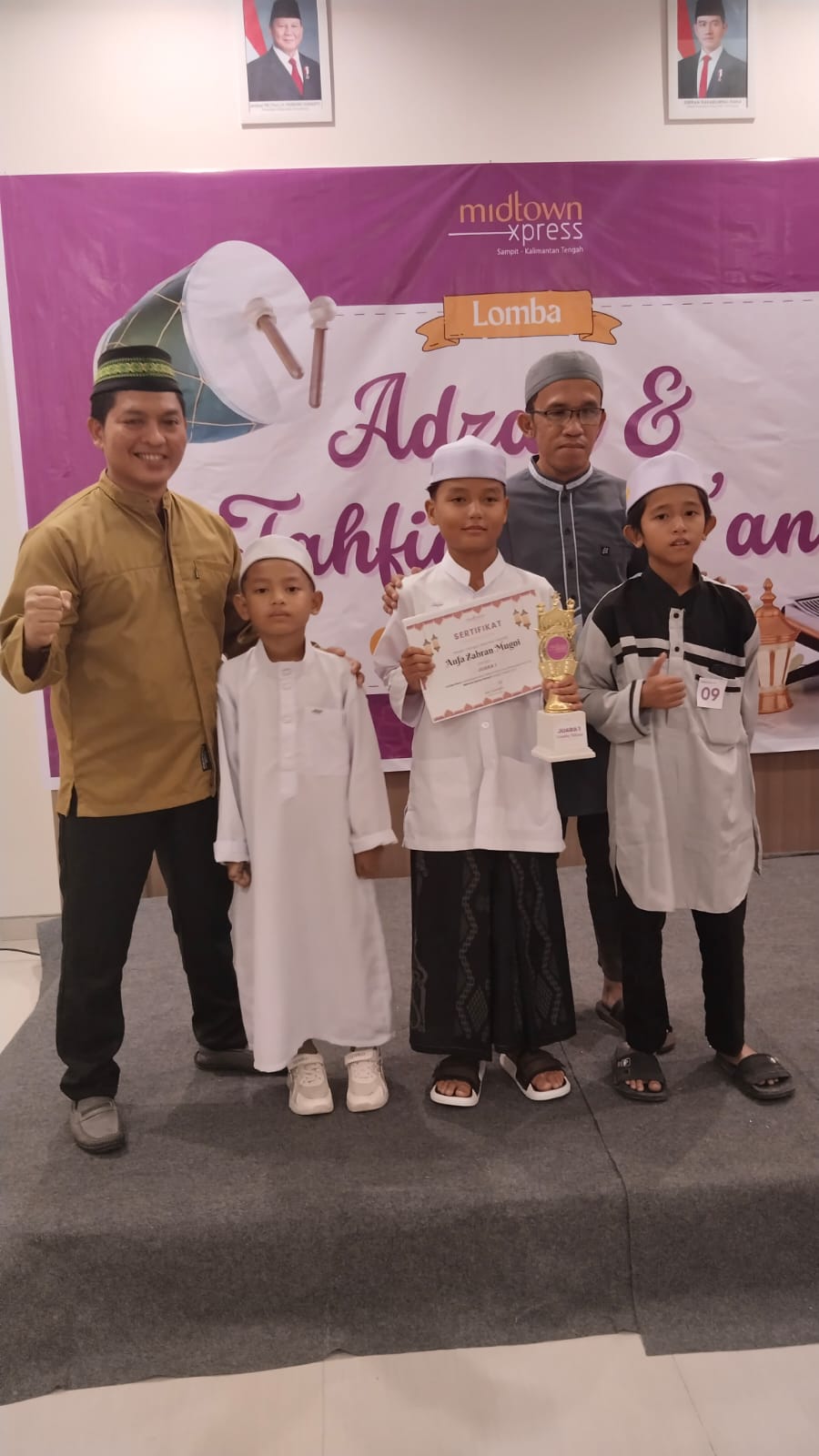 SAMPIT – Prestasi membanggakan kembali diraih oleh siswa SDN 4 Ketapang. Aufa Zahran Mugni berhasil meraih Juara 1 dalam Lomba Adzan yang digelar di Hotel Midtown, Jl. MT. Haryono No.81.