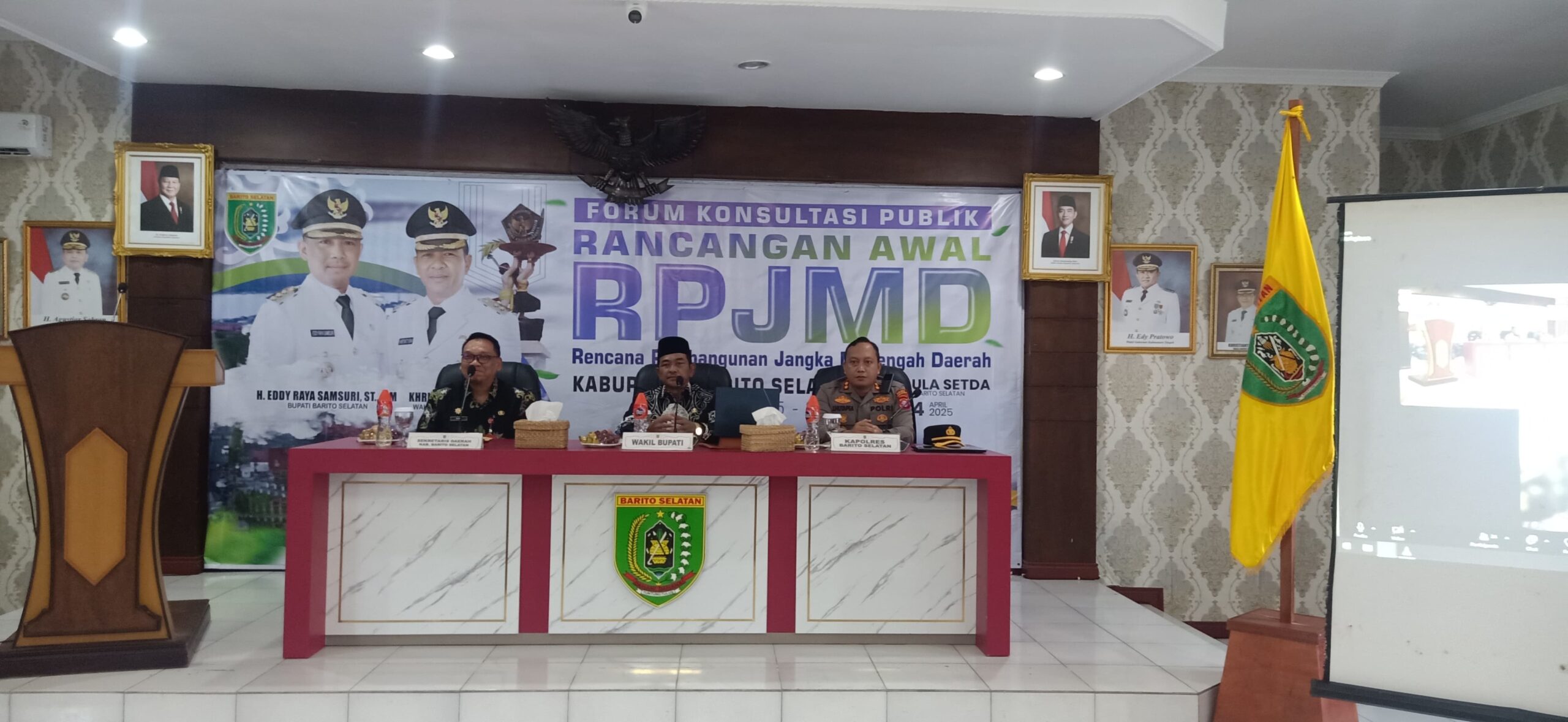 BUNTOK – Wakil Bupati Barito Selatan, Khristianto Yudha, secara resmi membuka Forum Konsultasi Publik Rancangan Awal Rencana Pembangunan Jangka Menengah Daerah (RPJMD) Kabupaten Barito Selatan Tahun 2025–2029. Acara ini digelar di Buntok, Kalimantan Tengah, pada Rabu (24/4/2025).