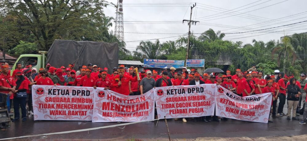 SAMPIT – Ratusan massa dari Tantara Lawung Adat Mandau Talawang menggelar aksi unjuk rasa di depan Kantor DPRD Kabupaten Kotawaringin Timur (Kotim), Jumat (13/2/2026).
