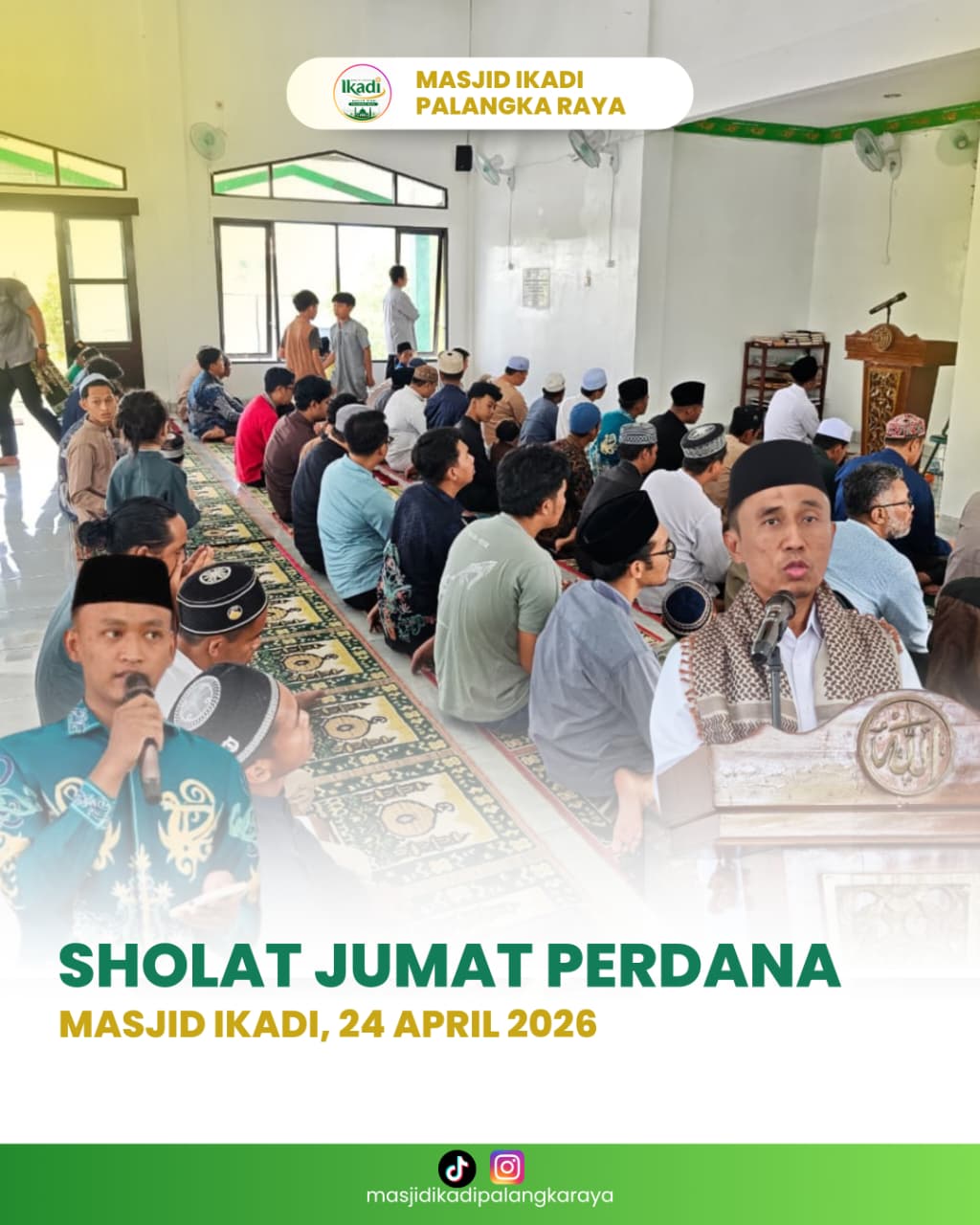 PALANGKA RAYA – Masjid IKADI Palangka Raya resmi menggelar pelaksanaan Sholat Jum’at perdana pada Jumat, 24 April 2026. Kegiatan ini menjadi momentum penting bagi pengurus dan jamaah sebagai langkah awal menghidupkan syiar Islam serta memperkuat ukhuwah di lingkungan sekitar masjid.
